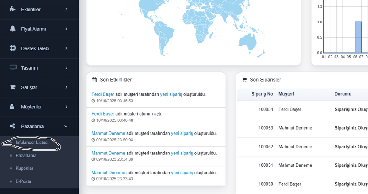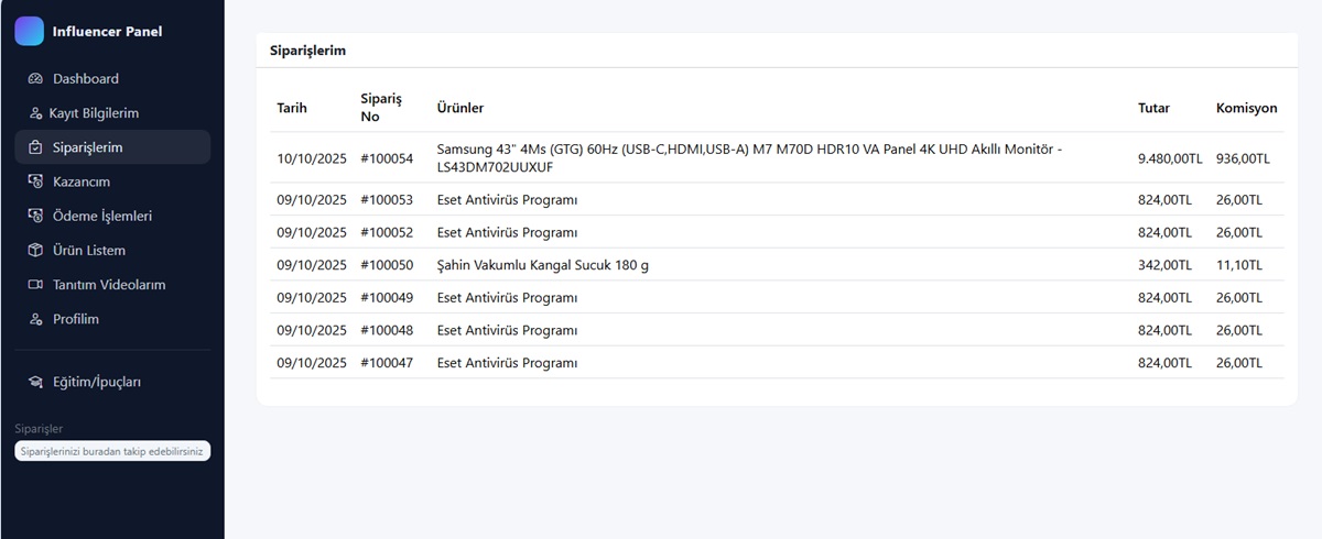 - Gelen siparişleri inflancer & satış ortağınız görebilir takip edebilir