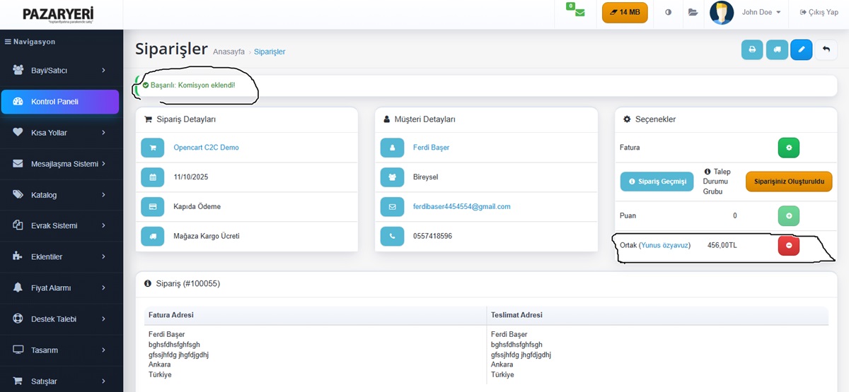 - İptal olan siparişlerin yada iade olan siparişlerin iptali yönetim tarafından yapılabilir yani komisyon geri alma işlemi yapabilir
