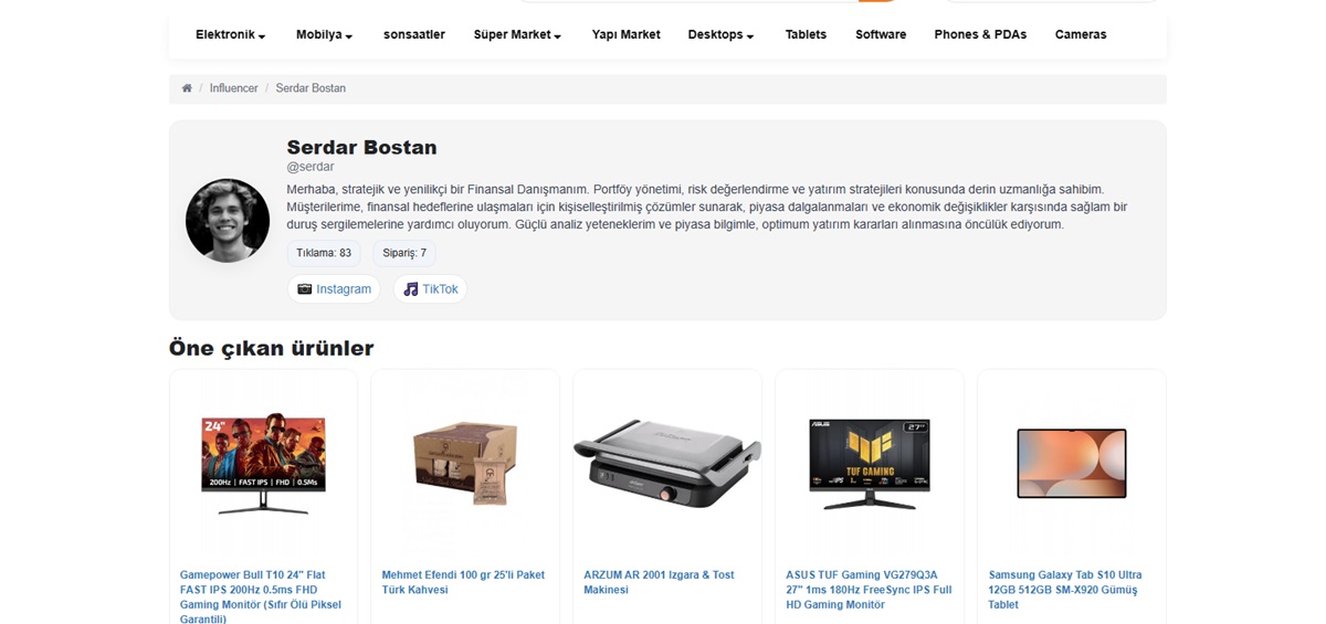 - Satış ortağınız yada infulancer profilini paylaşabilir ve profilinden gelen siparişlerden komisyon kazanbilir yani profilindeki ürünlere tıklar sipariş verirse müşteri komisyon kazanır satış ortağınız yada infulancer.